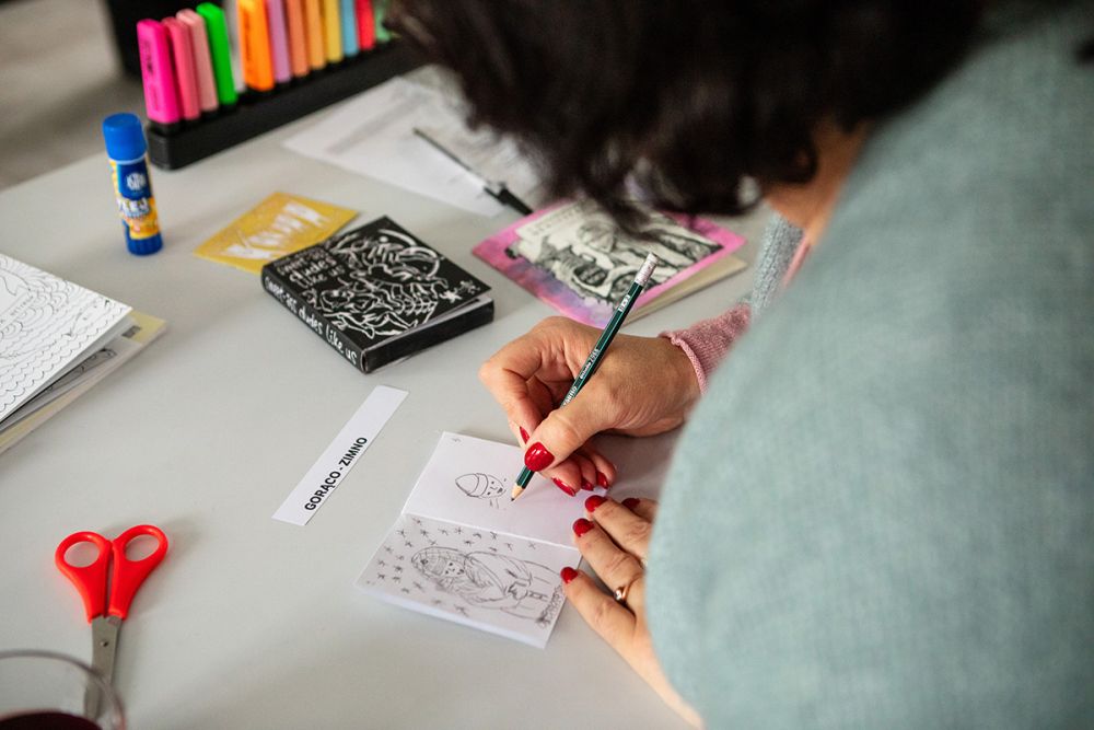 Porozmawiamy też o samych zinach, ich genezie, znaczeniu i roli w budowaniu społeczności. Przeanalizujemy wybrane ziny o różnych tematykach i poszukamy w nich inspiracji do naszych prac. Każdy z uczestników będzie w stanie stworzyć własną publikację na wybrany temat, używając poznanych na warsztatach technik składu czy tworząc autorski projekt okładki.